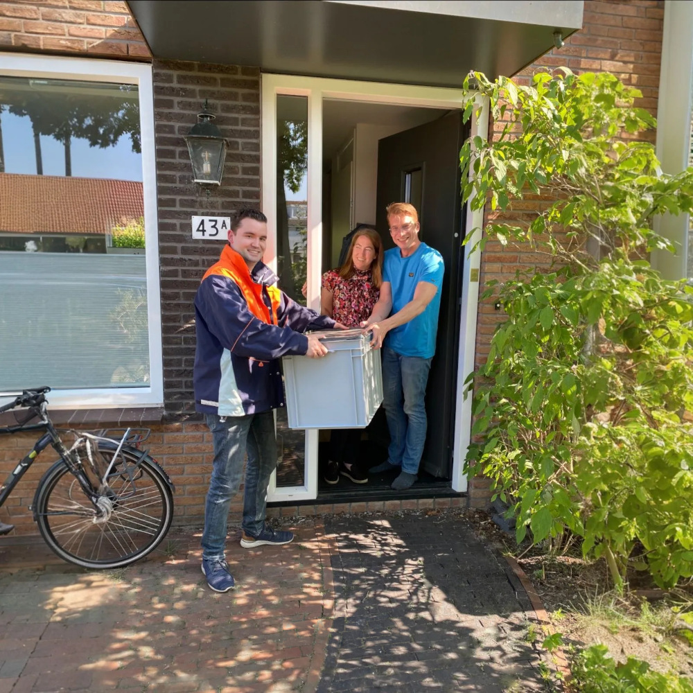 Na afloop van je feest of evenement verzamel je alle materialen weer in de handige transportbox, je plakt het label erop en je levert de box in bij een PostNL-servicepunt bij jou in de buurt.